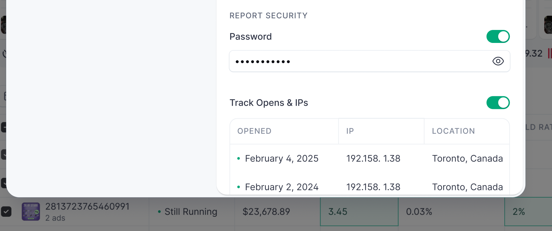 If you enable this toggle you will be able to keep track of every time a report is opened and from what location.